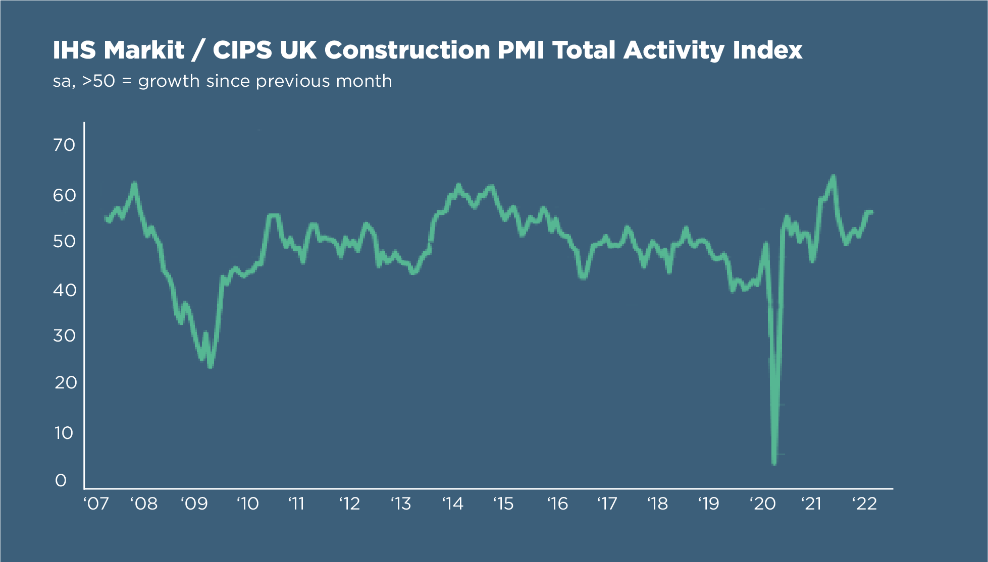 IHS Markit has noted that the construction output has continued to rise. However, business optimism has dropped to the weakest since October 2020 as a result of the concerns surrounding the war in Ukraine and inflationary pressures. Construction companies have said that there has been resilient customer demand despite the economic uncertainty. Yet again this month’s new orders outperformed the previous meaning output has increased every month since August 2021. The headline S&P Global / CIPS UK Construction Purchasing Managers’ Index ® (PMI ®) registered 59.1 in March, unchanged from February and well above the 50.0 mark that separates expansion from contraction.