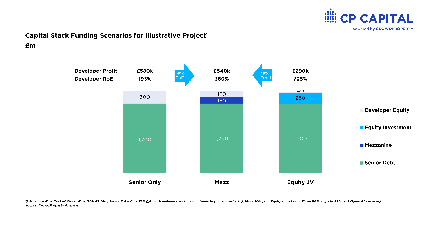 The economic and geopolitical uncertainty has meant that diminished optimism is widespread across many sectors. This is why in these times of economic pressure, property finance by property people makes so much sense – at CrowdProperty we work closely and productively with the developers we back, tackling market, site and situational challenges together in partnership. Having been developers ourselves, we are laser-focused on solving the pains of small and medium-sized developers - which is why we launched CP Capital last month, providing second-charge mezzanine finance for property developers. Property developer customers have consistently fed back to CrowdProperty that they would value mezzanine finance for their projects – to understand why, it helps to take a closer look at how development finance works.
